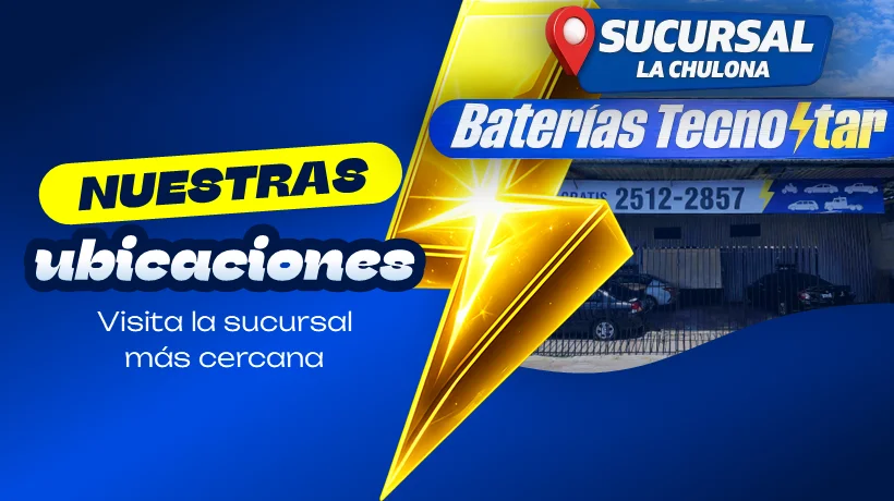 Sobre Avenida Independencia Sur y 31 Calle Oriente, Plaza Heroica, Local 3, lado opuesto «Importadora Ramirez», Santa Ana. Baterias TecnoStar.